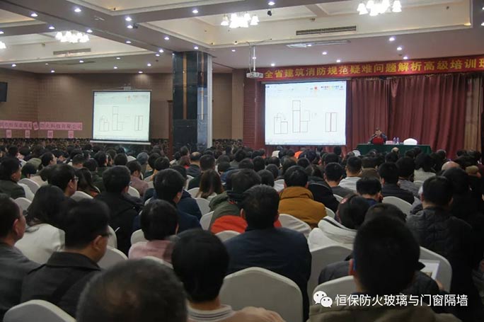 鶴山市恒保防火玻璃廠有限公司(深圳市恒保玻璃系統防火科技有限公司)在2017年12月組織了福建廈門和廣東深圳兩場《防火玻璃及其門窗幕墻應用》的設計師推介會后,馬不停蹄,與“中國建筑設計研究院人才培訓中心”“原公安消防局法制標準處處長馬恒”一起分別2018年1月8-9日于廣東深圳景苑梅沙酒店、16-17日于湖南長沙華璽大酒店、23-34日湖北武漢中天世紀酒店、26-27日廣西南寧裕景酒店,共同舉辦了4場《全省建筑消防規范疑難問題解析高級培訓班》,所到之處深受到設計師門的歡迎,受益設計師達1600多人次。主要的內容是:
