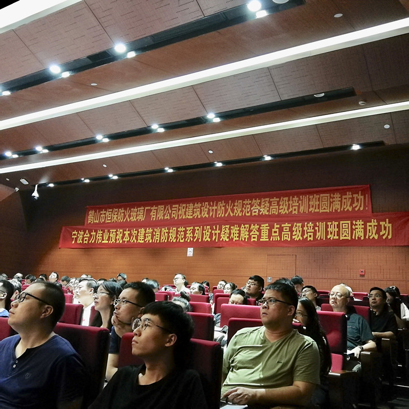 2019年4月和6月,鶴山市恒保防火玻璃廠有限公司與原公安消防局法制標準處處長馬恒,在廣東廣州和浙江杭州等城市,共同舉辦了《全省建筑消防規范》疑難問題解析高級培訓班,皆深受設計師們的歡迎。
