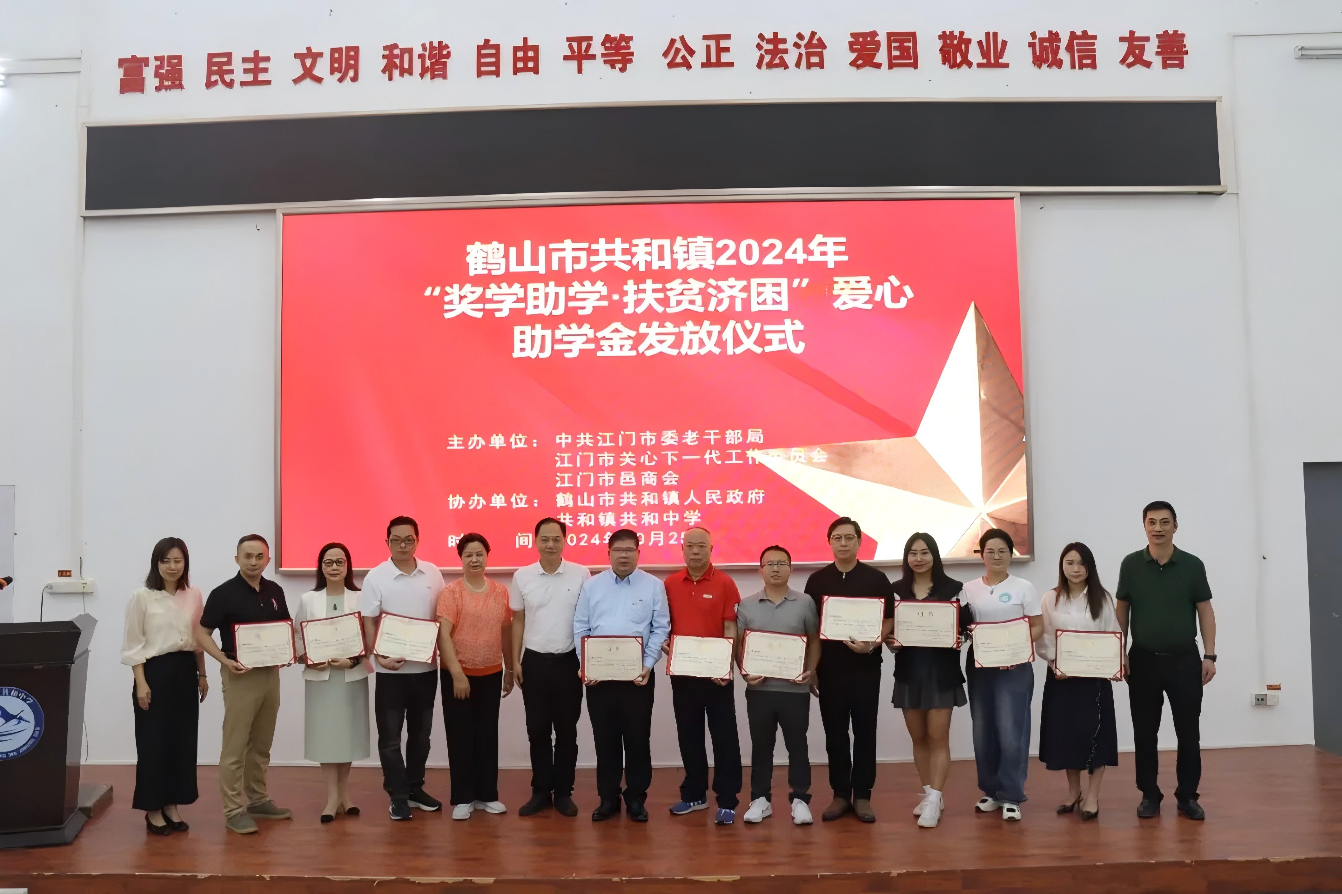 2024年10月25日,江門市委老干部局、江門市關工委、共和鎮(zhèn)委鎮(zhèn)政府,攜手江門市邑商會,在共和中學舉行了“獎學助學·扶貧濟困”愛心助學金發(fā)放儀式,為我鎮(zhèn)優(yōu)秀困難學子筑夢未來。這次活動讓我回想起自己當年小學初中求學時的情景,感慨萬千,同時提升了我個人和《灣區(qū)華商》在公眾心目中的形象。這是一次愛心的傳遞,更是一次精神的洗禮,激發(fā)了廣大學生的學習熱情,為共和鎮(zhèn)教育事業(yè)的發(fā)展注入了新的動力。