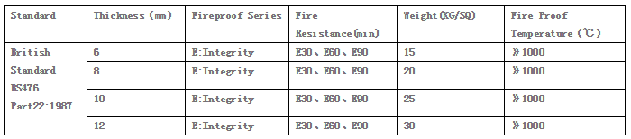英標系列單片防火玻璃技術(shù)參數(shù)如下